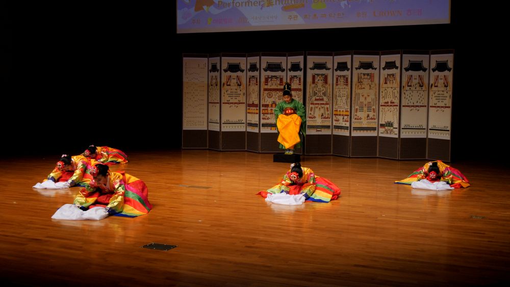 궁중 복식에 화관을 쓰고 타령조에 맞춰 한삼을 뿌리거나 감아들이며 추는 화관무는 궁중풍의 우아함과 화사함이 돋보이는 신무용계열의 창작춤으로 한국춤의 정 중 동과 동 중 정의 미학을 담은 작품이다.